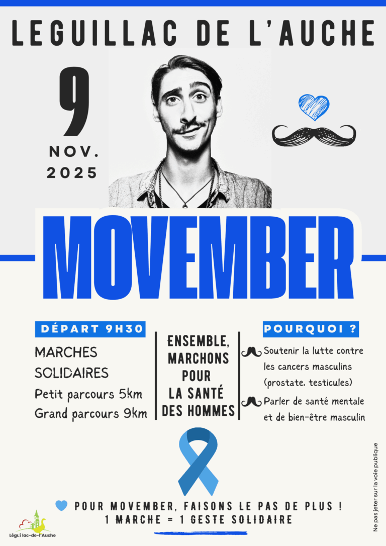 Mobilisons-nous en novembre pour la santé masculine ! À l’occasion du mois de sensibilisation aux cancers masculins, venez marcher solidairement à travers la commune le dimanche 9 novembre, avec deux parcours au choix : 5 km ou 9 km.