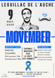 Mobilisons-nous en novembre pour la santé masculine ! À l’occasion du mois de sensibilisation aux cancers masculins, venez marcher solidairement à travers la commune le