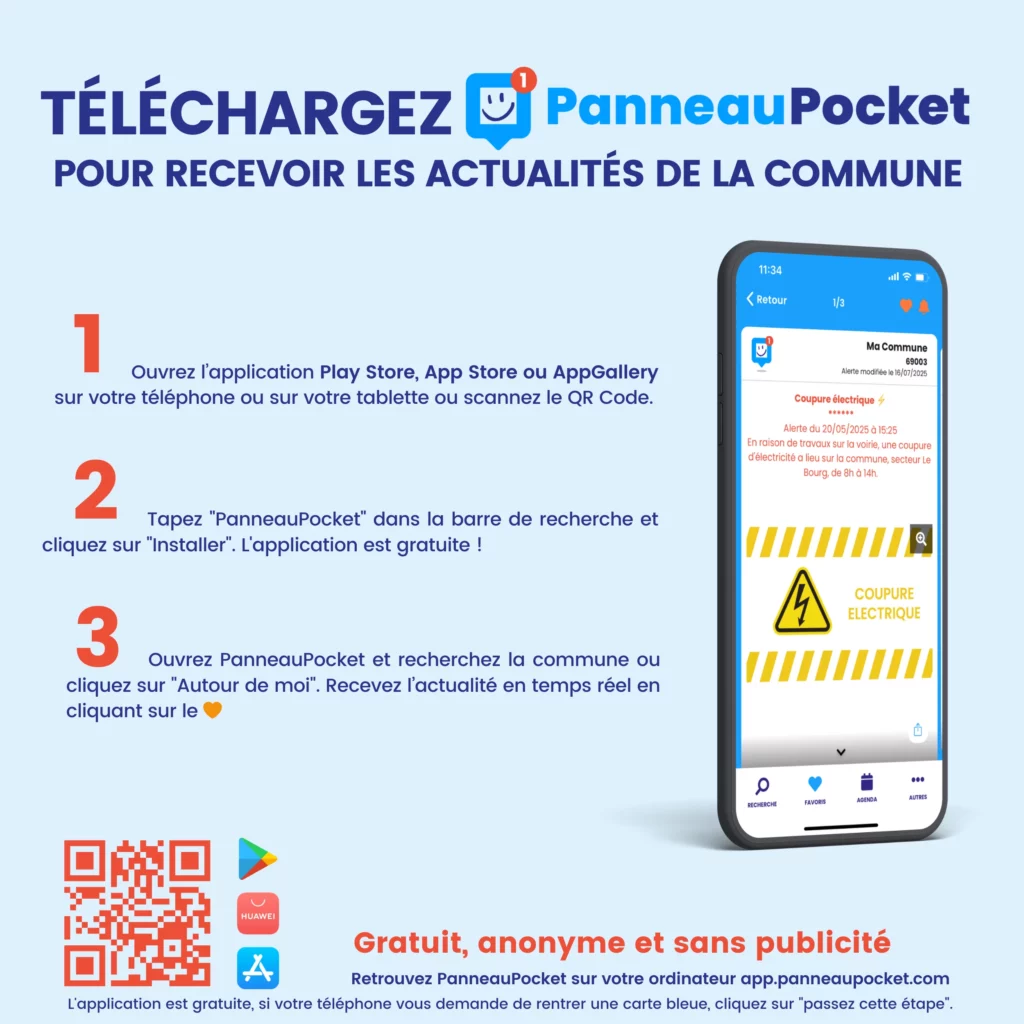 La commune met à votre disposition depuis plusieurs années l’application PanneauPocket, un outil simple et efficace pour rester informé de la vie locale.